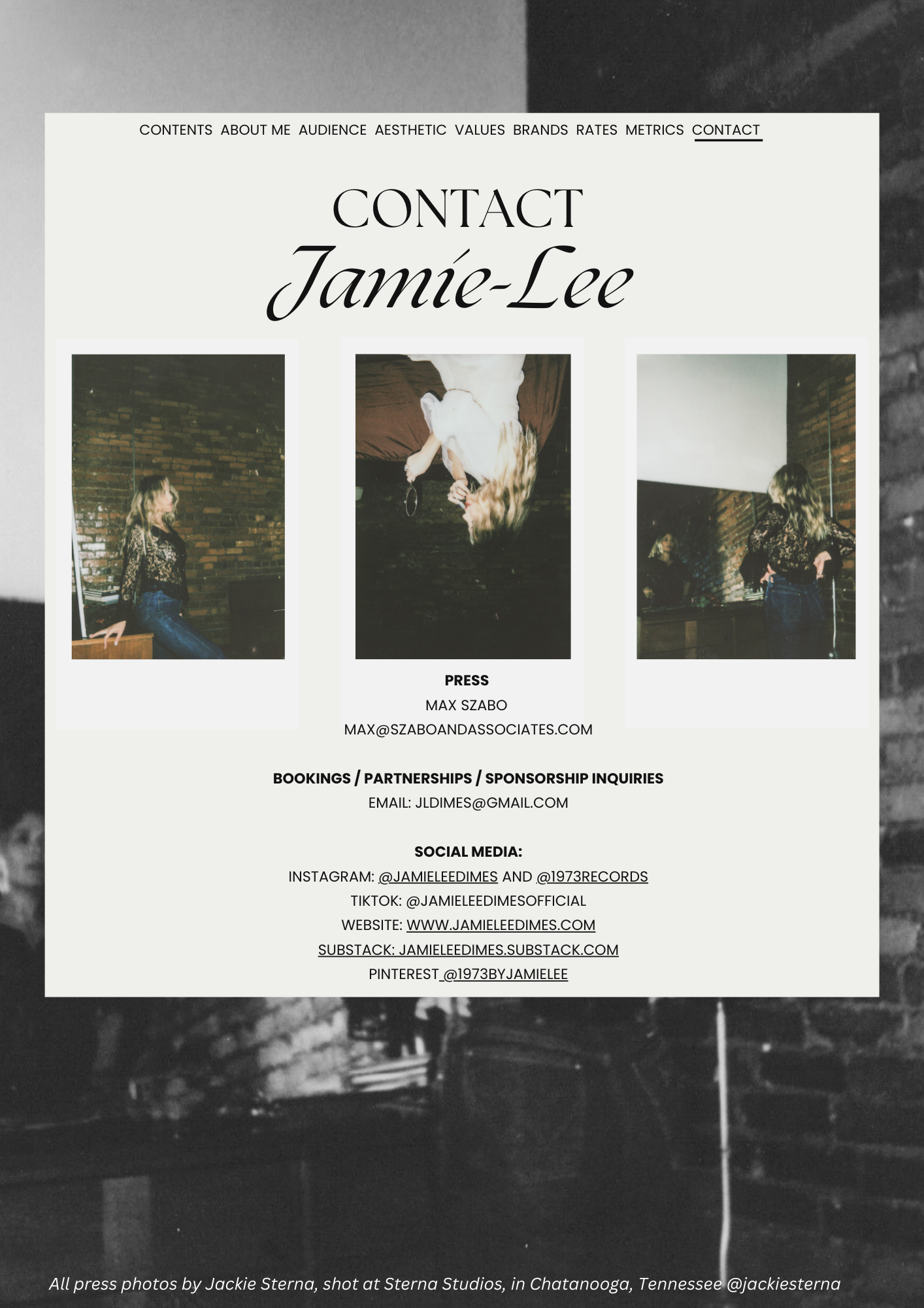 Writing music, capturing her moments on the road, and exploring the world through the lens of a camera were natural progressions for Jamie-Lee Dimes. Emerging as a multi-disciplinary artist, she conveys storytelling not only through music but also in film and photography through her label 1973 Records, where she is gaining her degree in sociology and public relations, and has been creative directing for brands. Her work resonates across America, Europe, Latin America, Australia, and Aotearoa, connecting deeply with global audiences.
